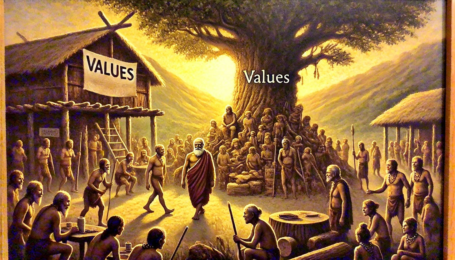 De repente, notas una figura modelo, una presencia imponente pero calmada, es Valores, caminando entre los miembros de su Tribu, guiándolos con sabiduría y firmeza.